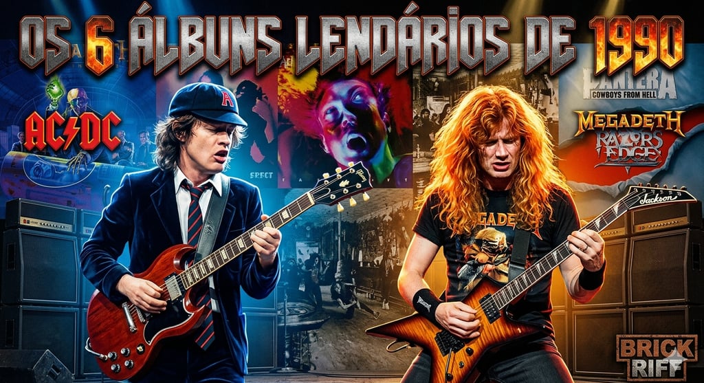 Para entender a magnitude desse ano, basta olhar para a diversidade que chegava às prateleiras das lojas de discos. Enquanto o Blues ganhava um fôlego visceral e técnico, o Heavy Metal se refinava em complexidade e o Groove começava a dar as caras com uma agressividade nunca antes vista. Escolher os protagonistas dessa safra é uma tarefa de responsabilidade, mas separamos seis discos que são verdadeiras lendas aqui no BrickRiff, obras que moldaram o nosso jeito de ouvir guitarra e que, até hoje, soam tão potentes quanto no dia em que a agulha tocou o sulco do vinil pela primeira vez. Ajusta o ganho, prepara o pescoço e confere essa seleção de peso que abriu a década com o pé na porta: